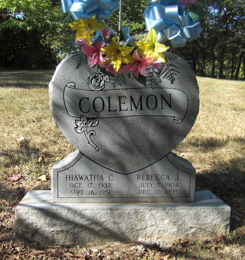 Colemon Hiawatha C 1933-1951 (Rebecca J Fairrow 1904-1993) HS ELCC Published April 14, 2016 at 1599 × 1699 in Library/Resources Eolia Community Cemetery Continue reading →